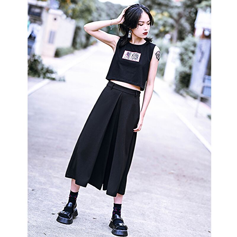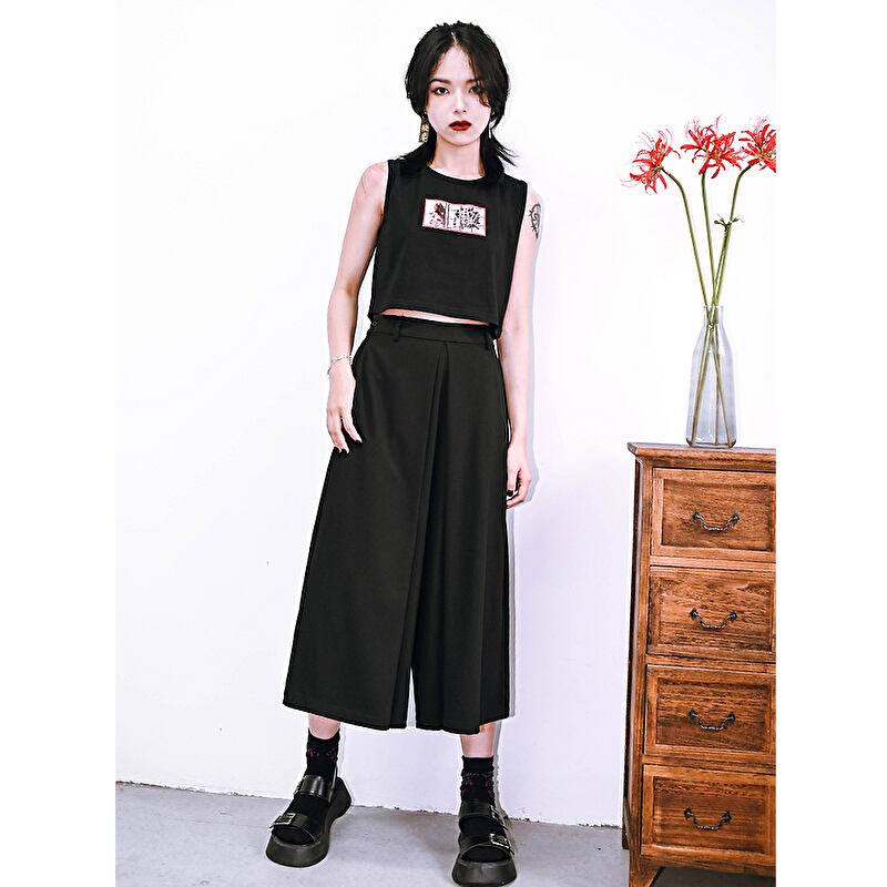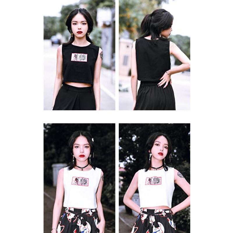サブカル 服 地雷系 通販 チャイナ風服 チャイナ風服 古怪舎 タンクトップ ワンポイント プリント レトロ 闇かわいい ゴスロリ 中華服 チャイナ服 普段使い