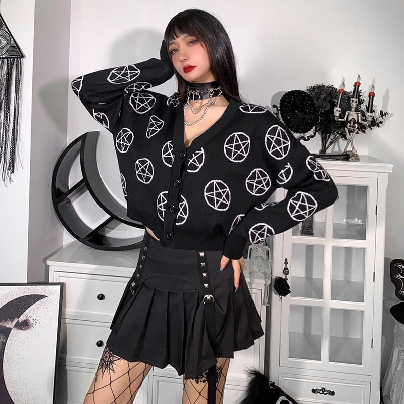 サブカル 服 地雷系 通販 セーター カーディガン Dark gothic 五芒星 暗黒系 闇かわいいバンギャ