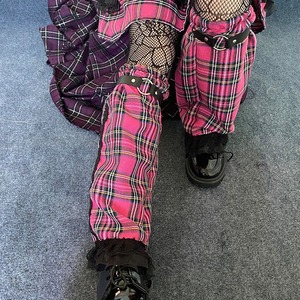 チェック柄レッグウォーマー、レッグカバー、ベルトの3点セット