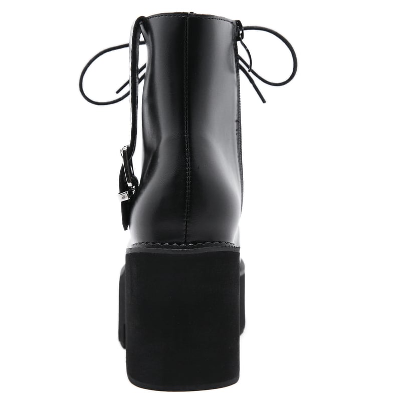 縦のダブルベルトにサイドジッパーの編み上げ厚底ブーツです。
