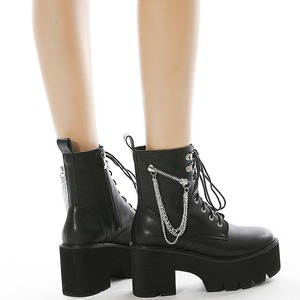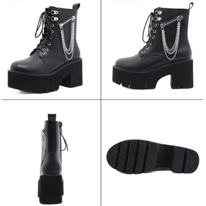 ZIPファスナーにチェーンが病み可愛いストリート系編み上げ厚底ブーツです。