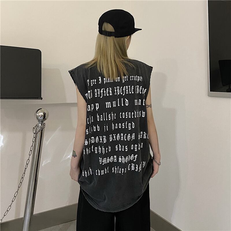 サブカル 服 地雷系 通販 ノースリーブ ウォッシュド バックロゴ 闇かわいい ゴシックバンギャ