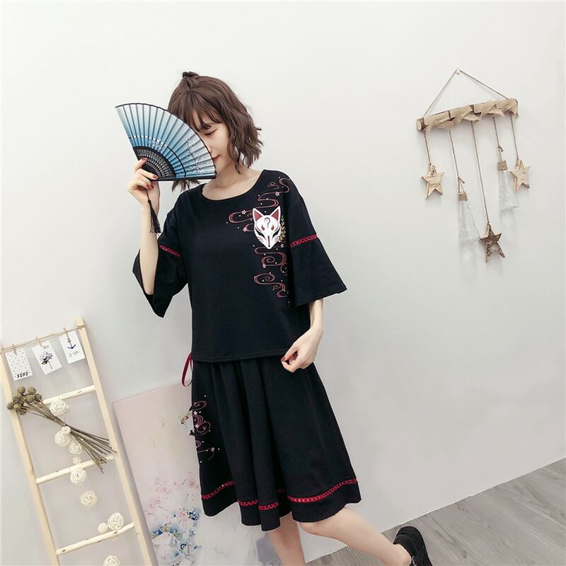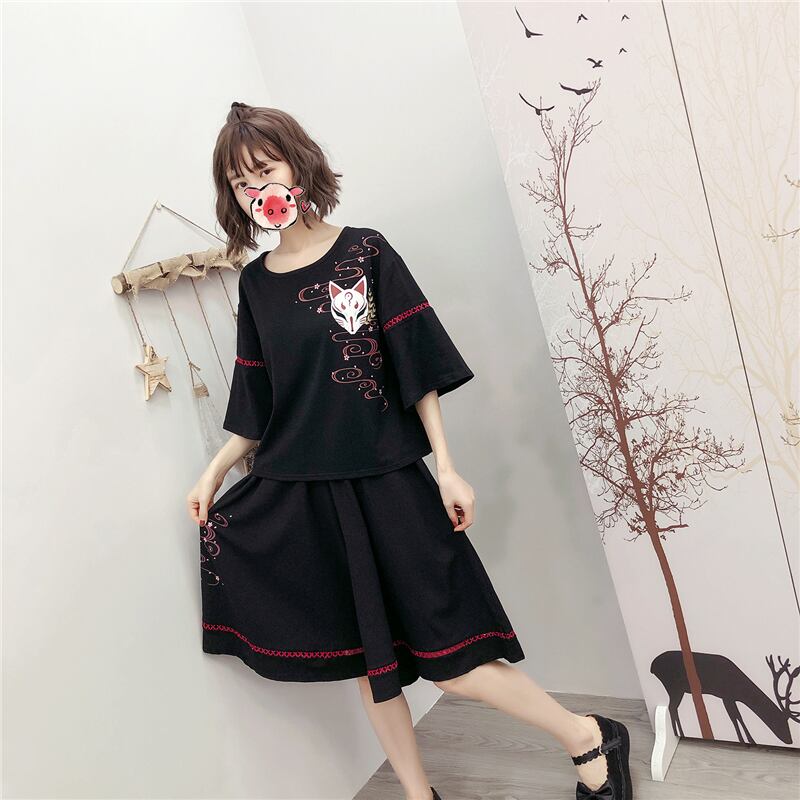 サブカル 服 地雷系 通販 Tシャツ レトロ チャイナ服 中華服 キツネお面