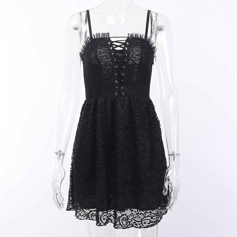 編み上げレースアップが病み可愛いノースリーブワンピ