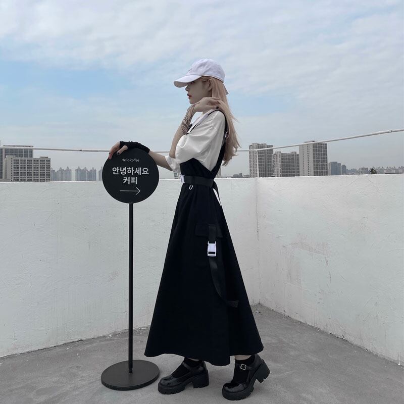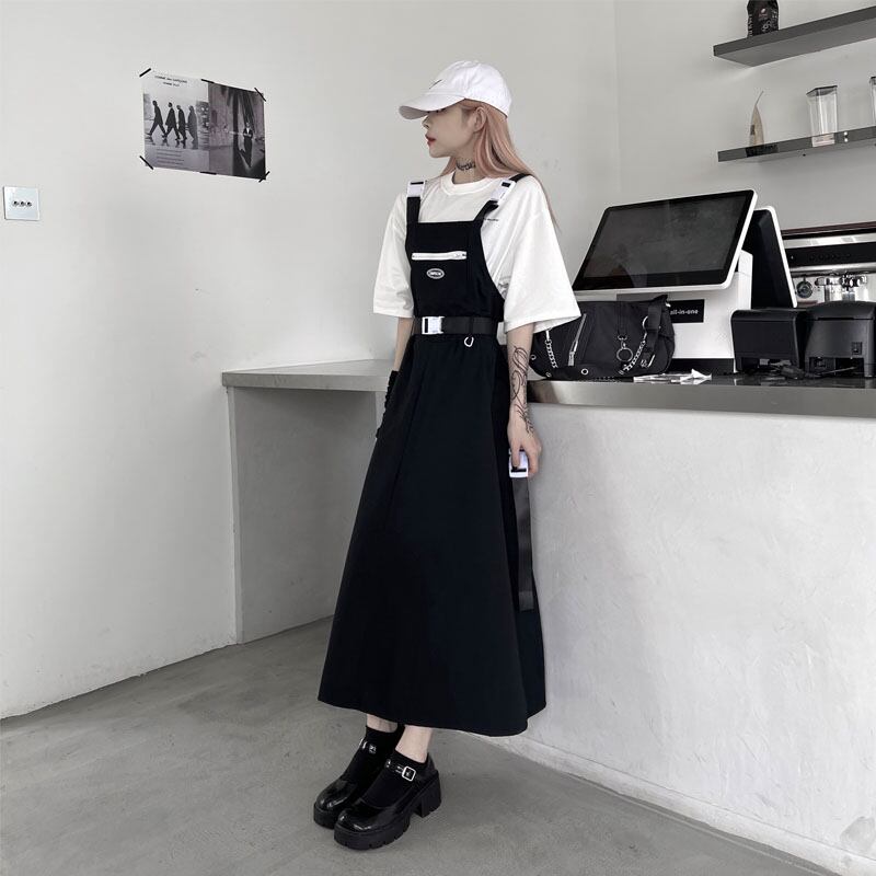 サブカル 服 地雷系 通販 オーバーオール スカート ロング丈 ハイウエスト ストリート系バンギャ 韓国ファッション