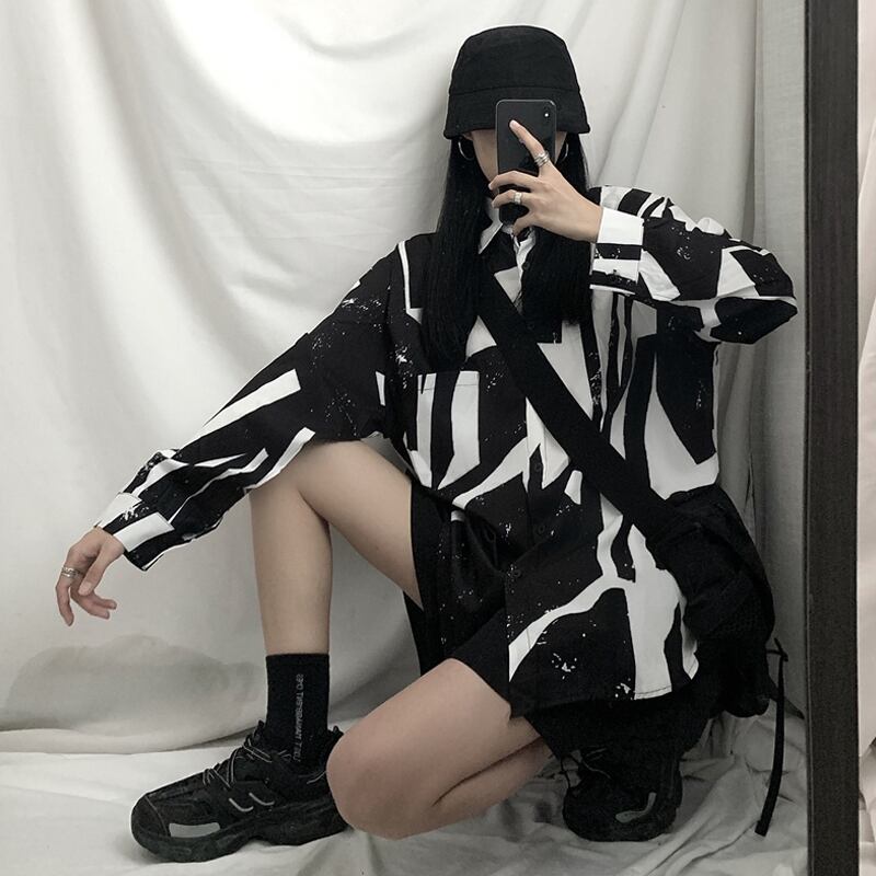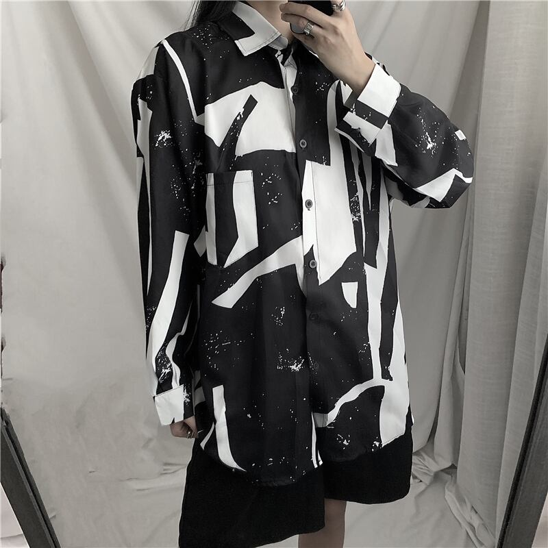 黒と白のモノトーンカラーが高見えな長袖シャツです