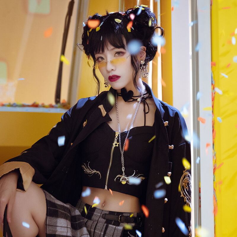 サブカル 服 地雷系 通販 キャミソール ZIPアップ 刺繍 チャイナ服 中華服 闇かわいい パンクストリート系バンギャ