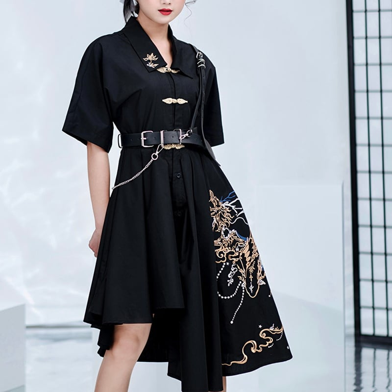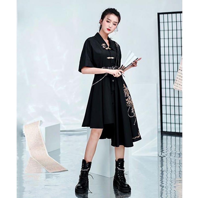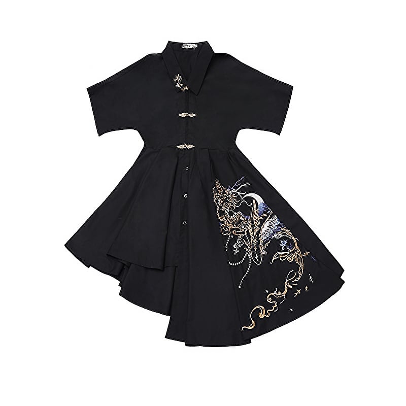 レトロなドラゴン刺繍が高見えなChineseGothicワンピ