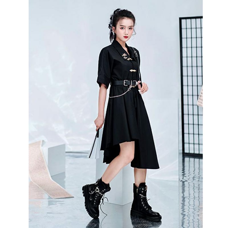 サブカル 服 地雷系 通販 ワンピ ミドル丈 アシンメトリー チャイナ服 中華服 刺繍 レトロ 闇かわいい ストリート系バンギャ