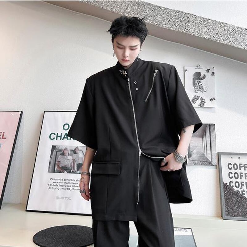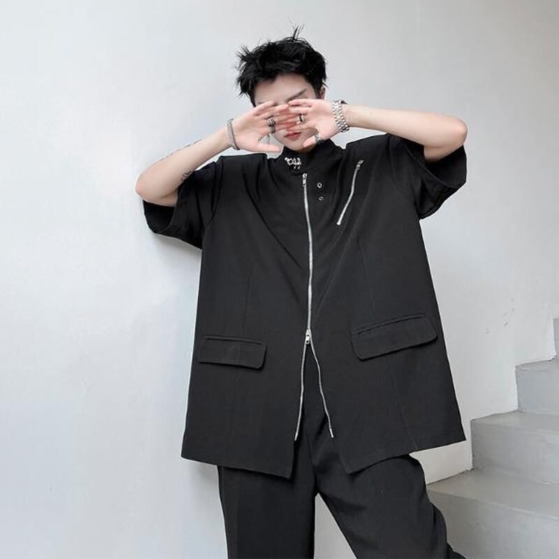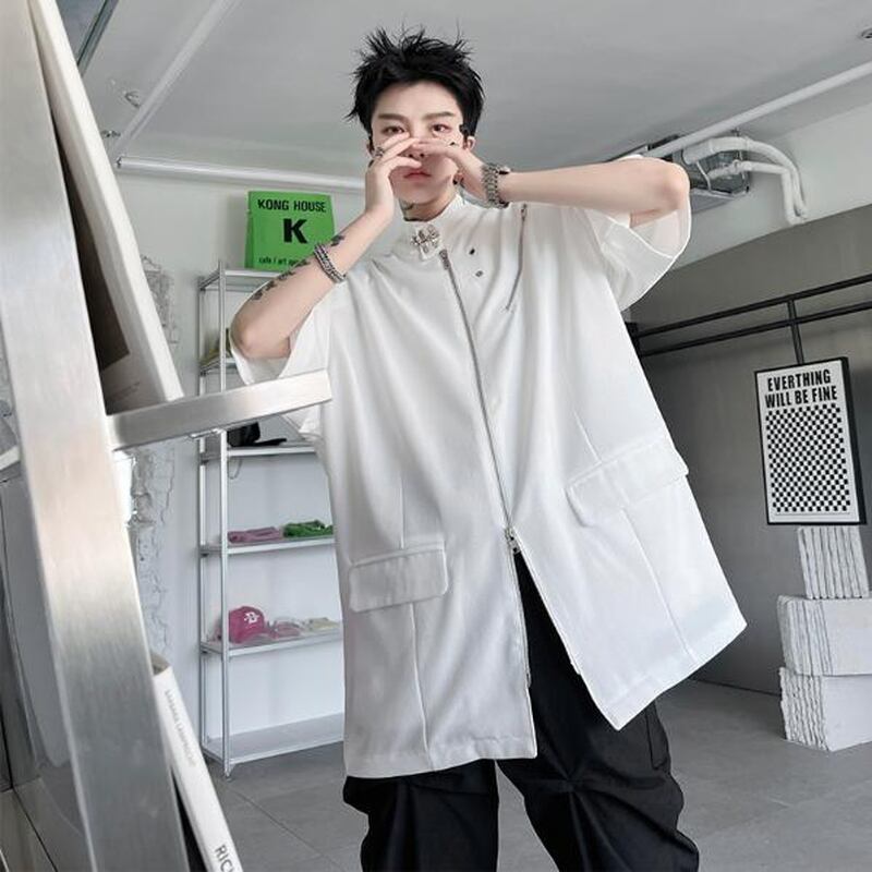 サブカル 服 地雷系 通販 メンズ シャツ ジャケット ZIP ポケット かっこいい ブラック ホワイト