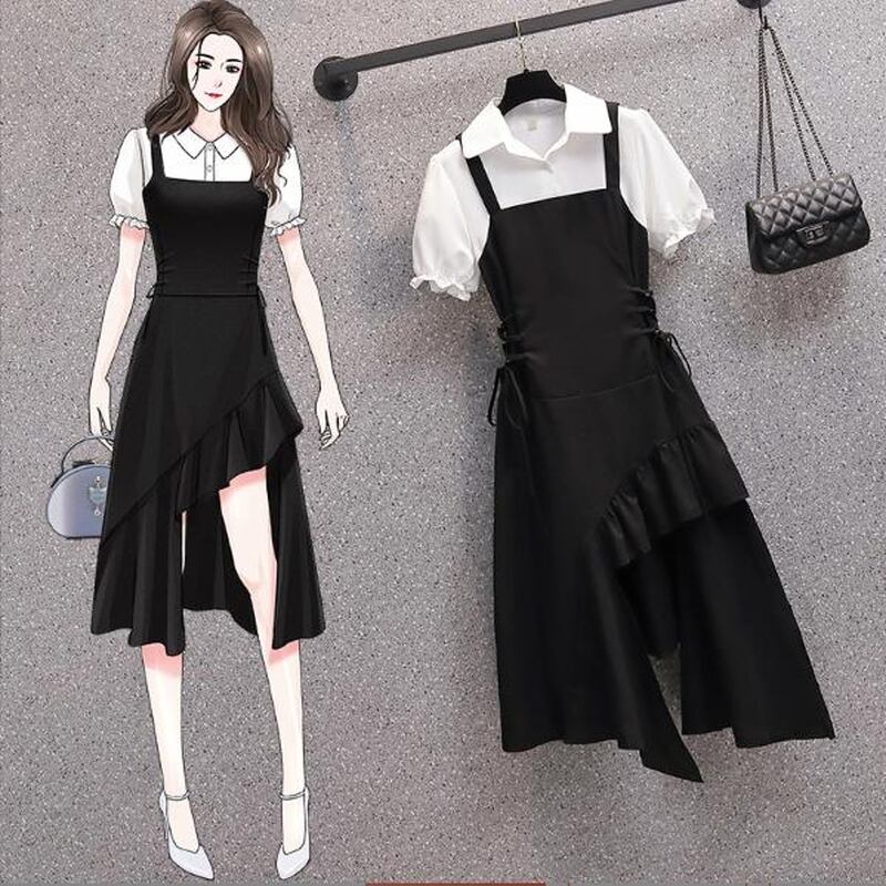 サブカル 服 地雷系 通販 ワンピ フェイク ツーピース アシンメトリー フレアスカート 大人カジュアル 闇かわいい 量産型