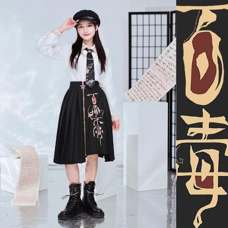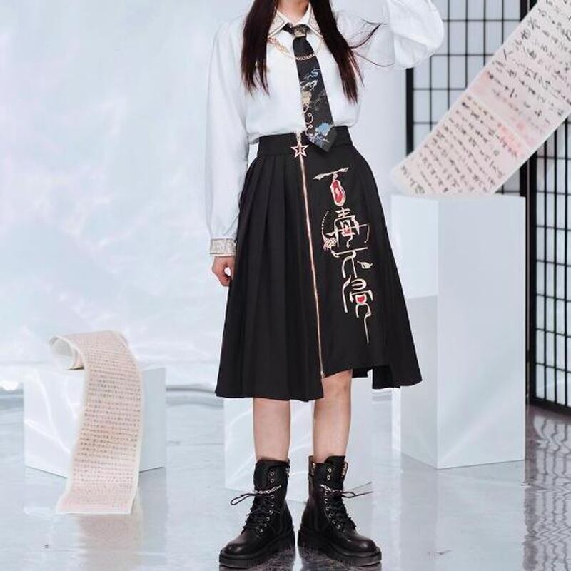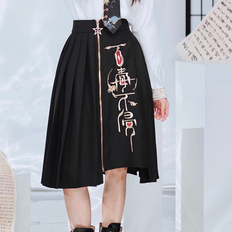 サブカル 服 地雷系 通販 アシンメトリー スカート ZIPアップ 百毒 刺繍 スコーピオン チャイナ服 中華服 闇かわいい ストリート系バンギャ