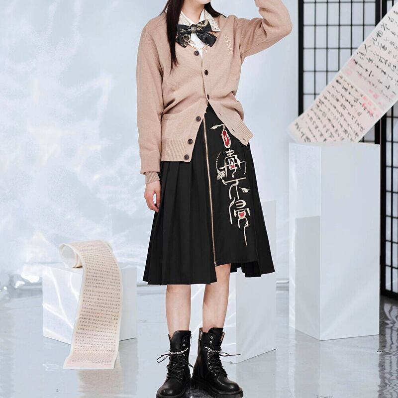 ミドル丈のプリーツに病み可愛い刺繍がおしゃれ