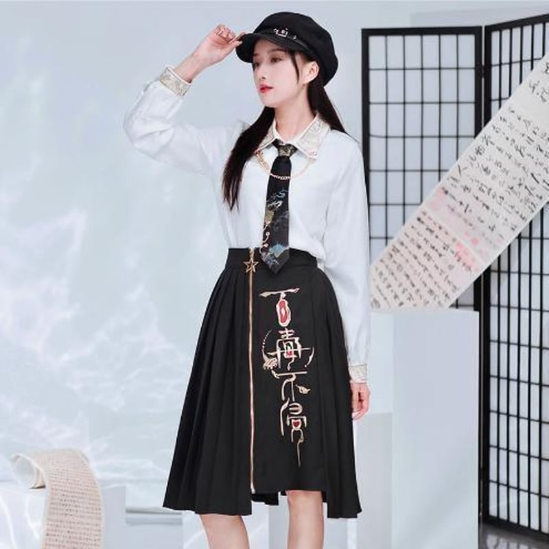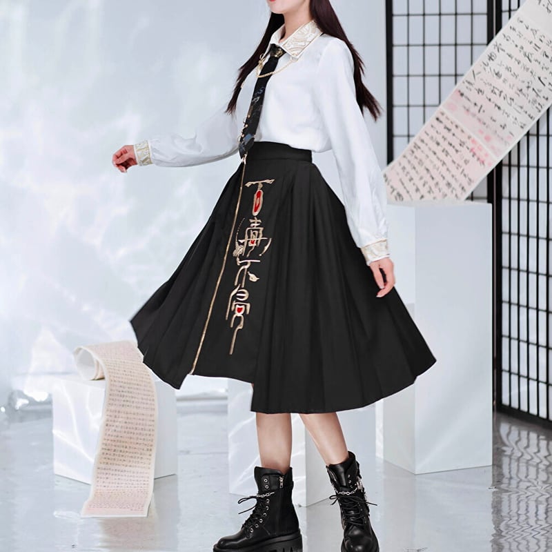 アシンメトリーなミドル丈にスコーピオン刺繍が病み可愛いChineseGothicスカート