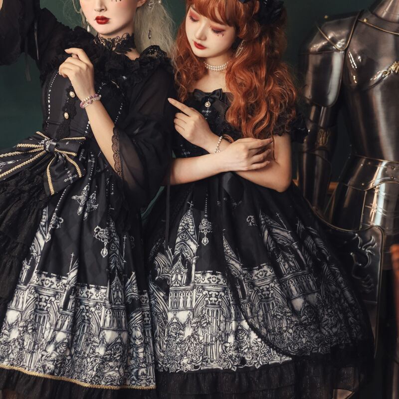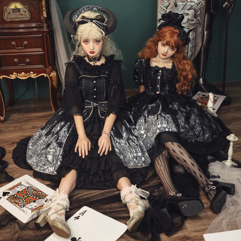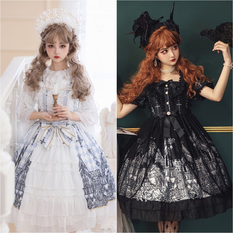 レトロな病み可愛いブラックと甘めなホワイトのJSKです