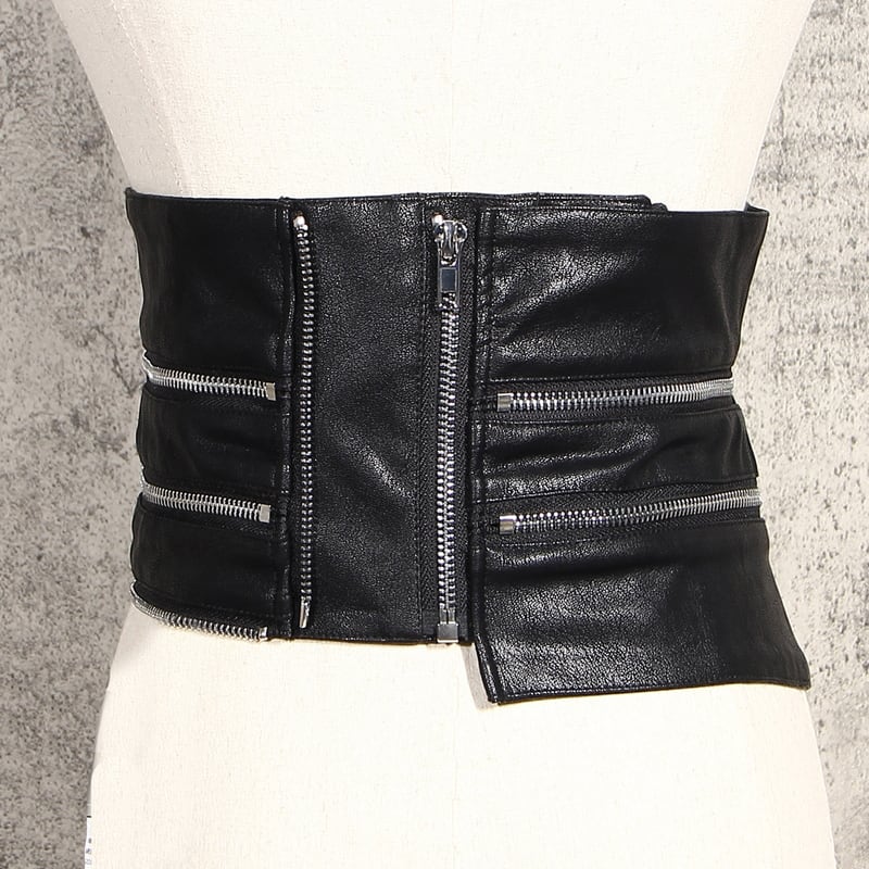 高見えするPUレザーのZIPファスナー付きウエストベルト
