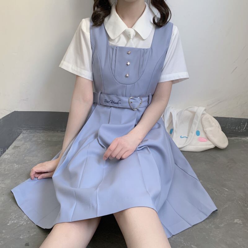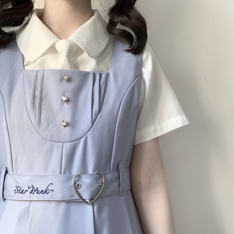 キラキラ星ボタンにハートのウエストベルトがかわいいJKノースリーブワンピです