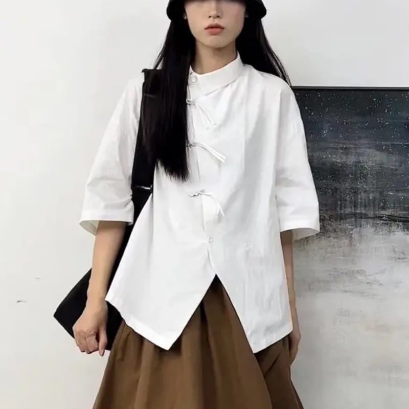 サブカル 服 地雷系 通販 シャツ 7分袖 中華風 チャイナボタン 異形デザイン 闇かわいい