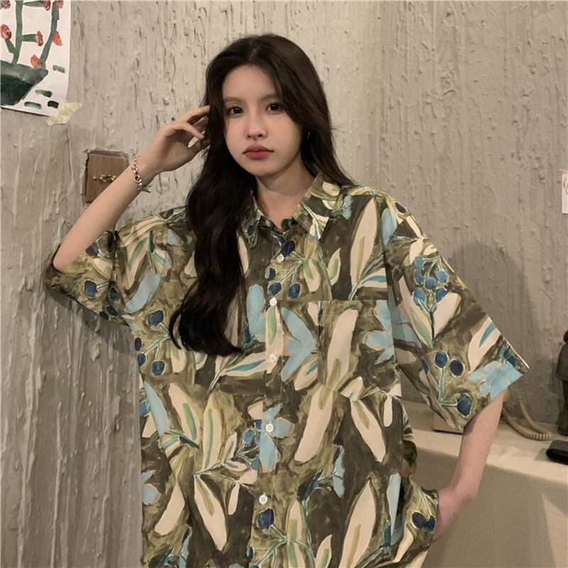 サブカル 服 地雷系 通販 半袖シャツ レトロ 花柄 アロハシャツ ボタニカル ゆったり カジュアル