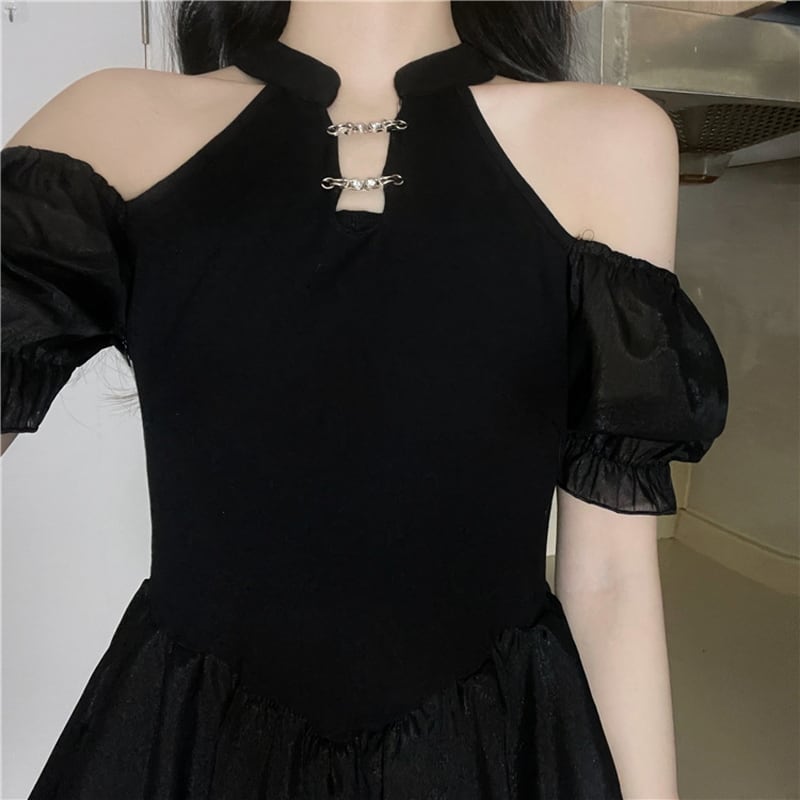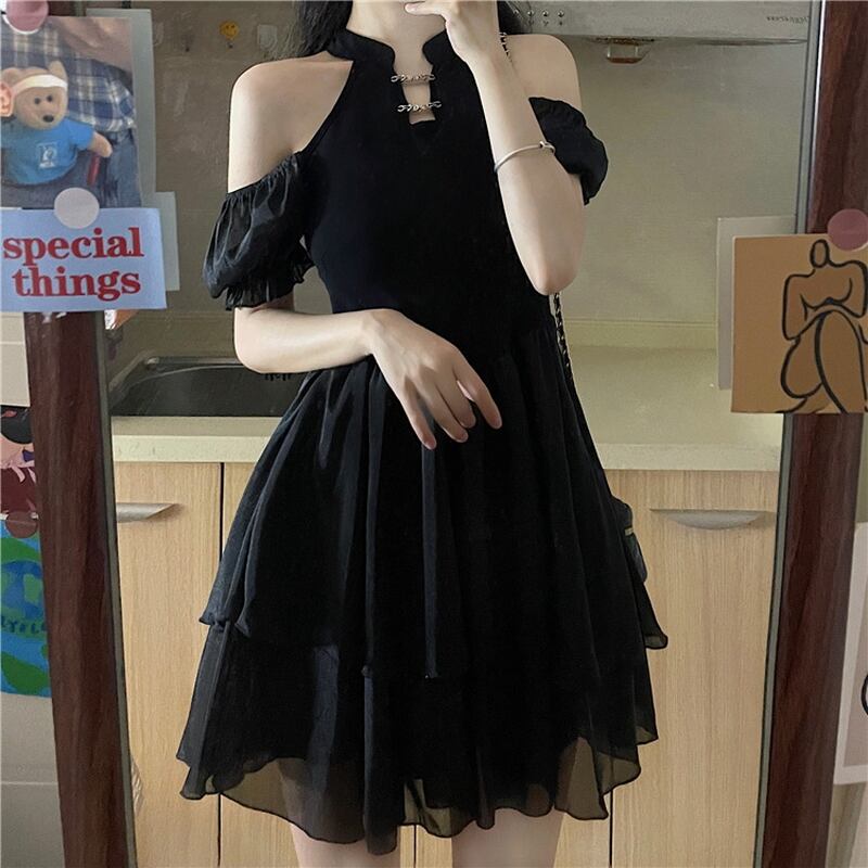 サブカル 服 地雷系 通販 ワンピ オフショル ミニ丈 レース フレアスカート 闇かわいい