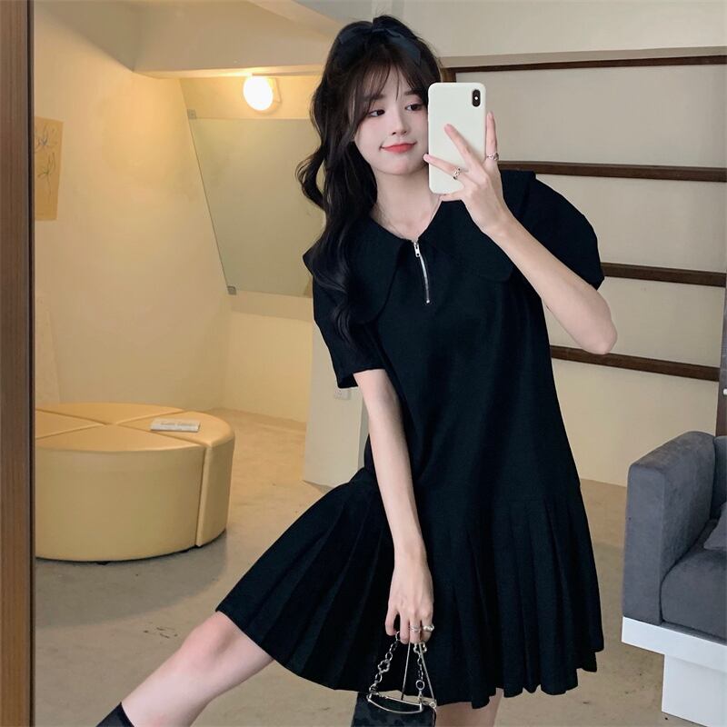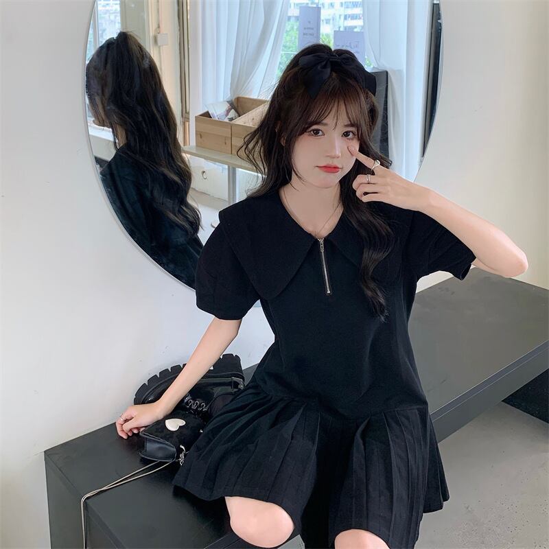 ZIPアップにプリーツミニ丈のちょっぴり甘めな半袖ワンピです