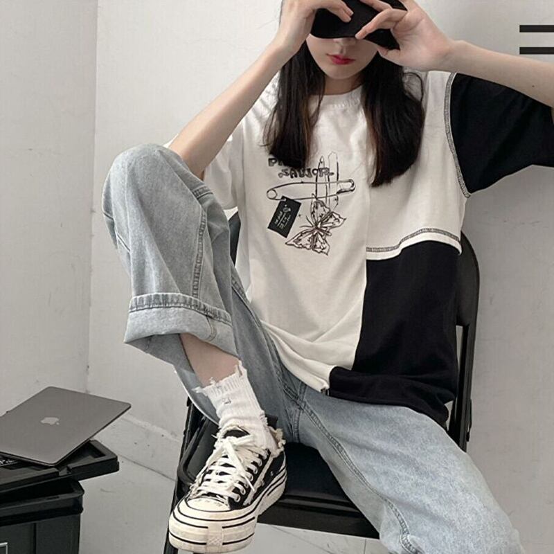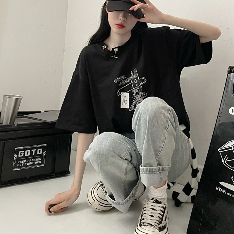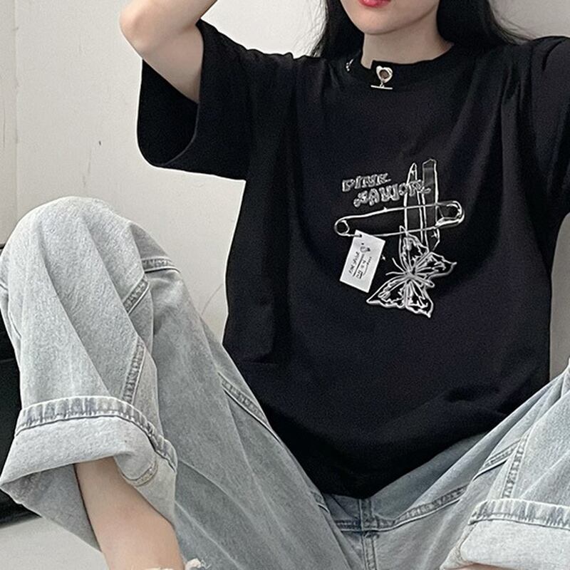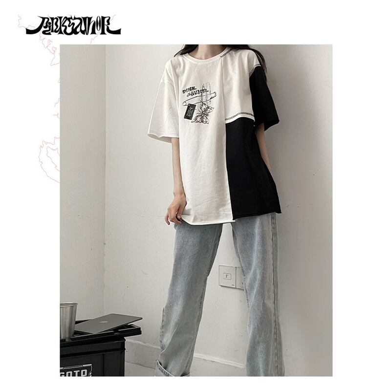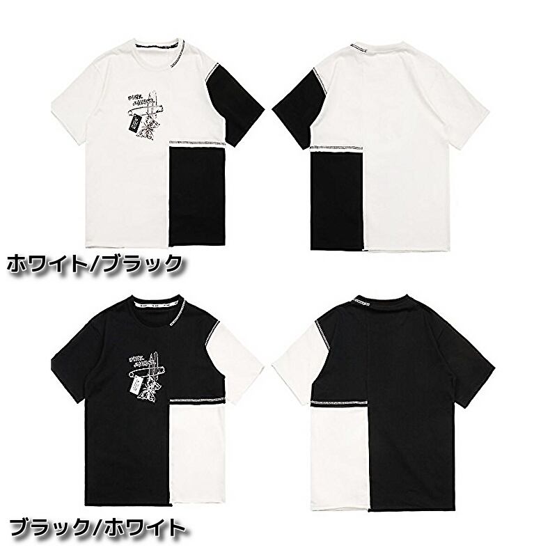 サブカル 服 地雷系 通販 Pinksavior バイカラー 半袖 Tシャツ butterfly ワンポイント プリント柄 カジュアル