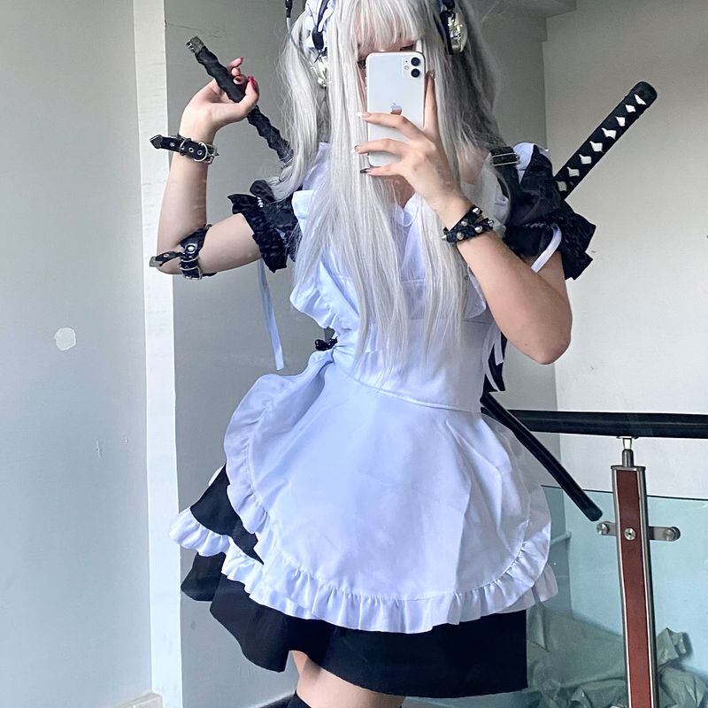 サブカル 服 地雷系 通販 ロリータ メイド服 ミニ丈 半袖 ワンピース エプロン フリル コスプレ 仮装 ハロウィン コンカフェ