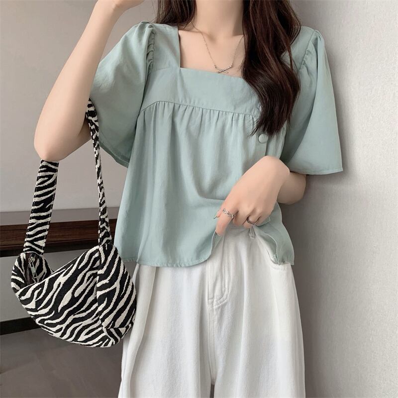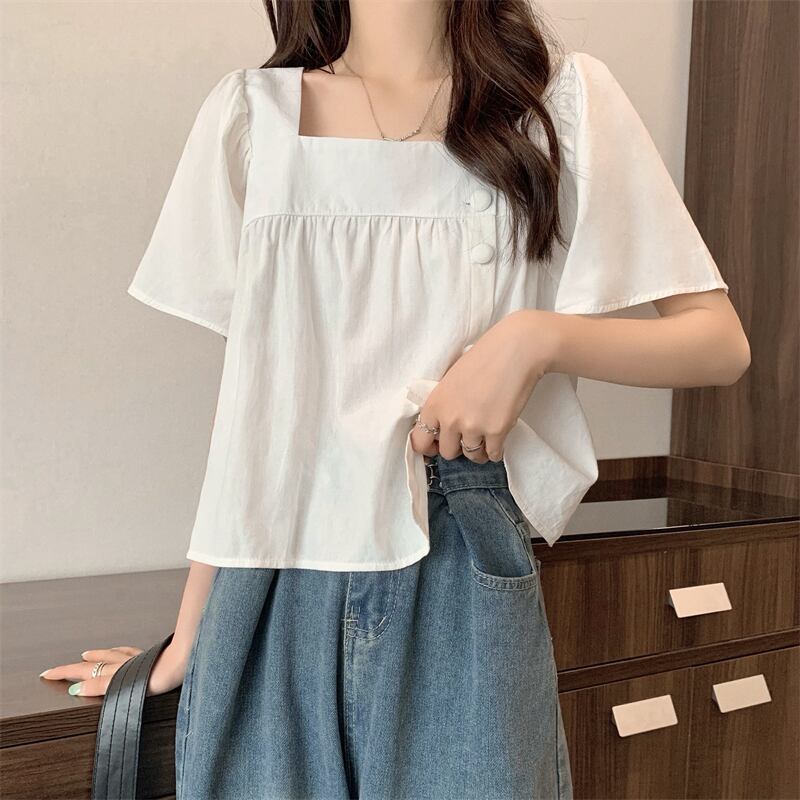 スクエアネックの甘めJKスタイルの半袖シャツ