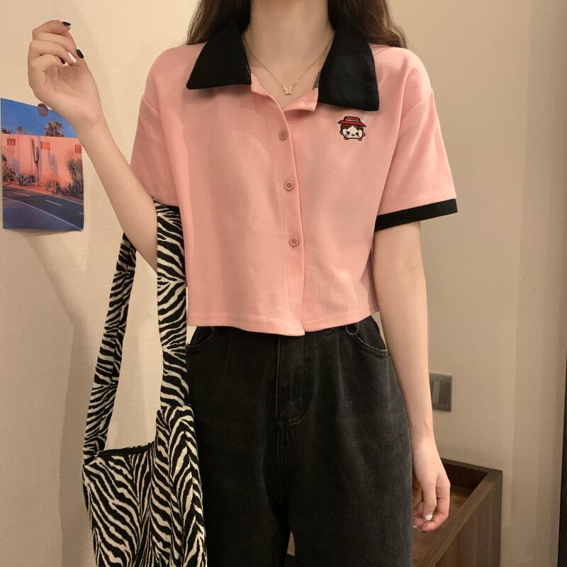 サブカル 服 地雷系 通販 ポロシャツ 半袖 ワンポイント バイカラー ガーリー 甘め カジュアル