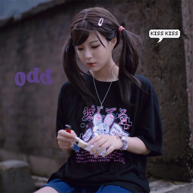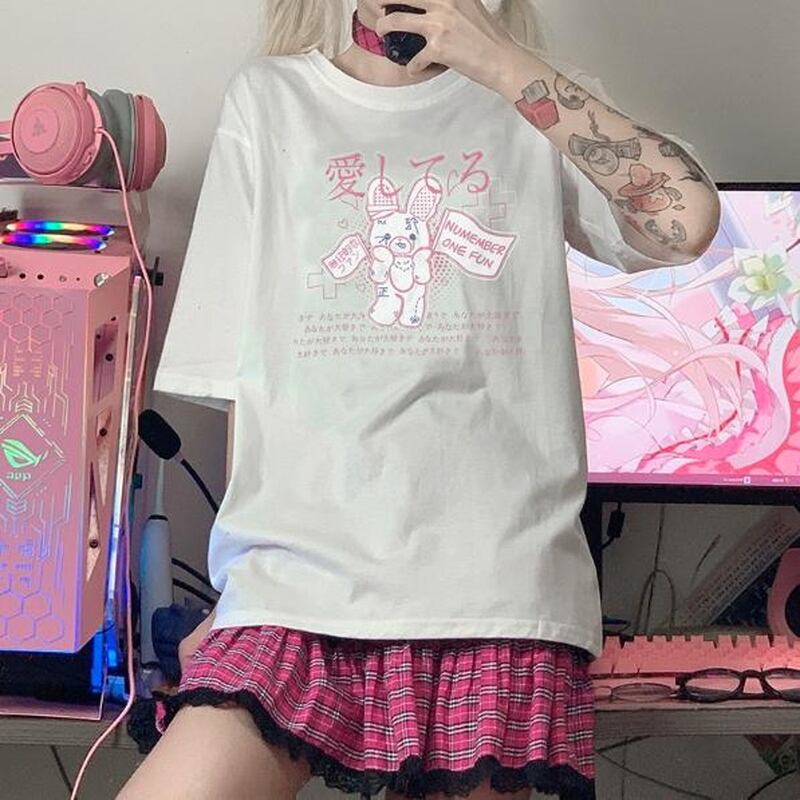 サブカル 服 地雷系 通販 半袖 Tシャツ うさちゃん プリント柄 かわいい 甘め