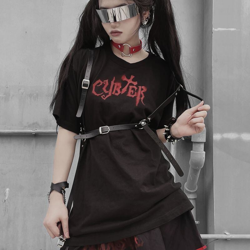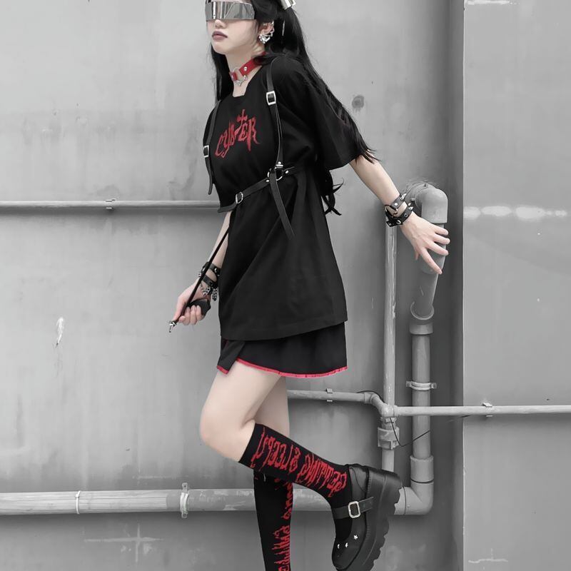サブカル 服 地雷系 通販 Miub オリジナル ロングTシャツ 半袖 ロゴ プリント ロック パンク自発 ヤンデレ