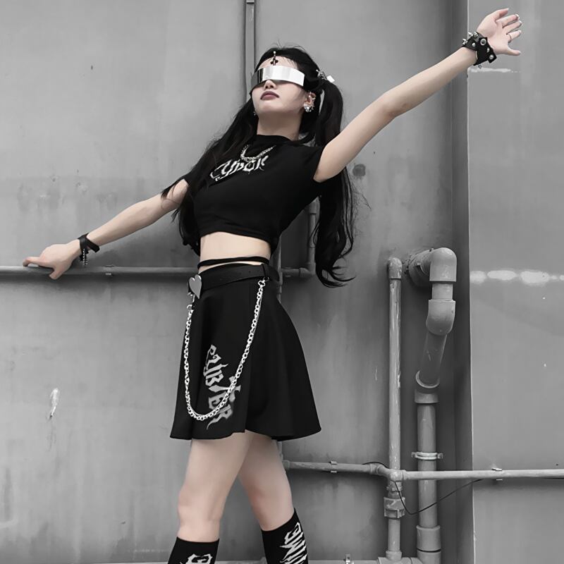 サブカル 服 地雷系 通販 Miub ミニスカ フレアスカート 英字ロゴ ウエストベルト付属 ハート 闇かわいい ゴシック 系 ヤンデレ バンギャ