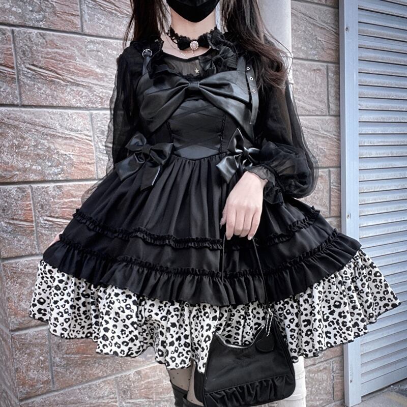 サブカル 服 地雷系 通販 ロリータ JSK ミニ丈 ヒョウ柄 ハイウエスト アイドル衣装コンカフェ