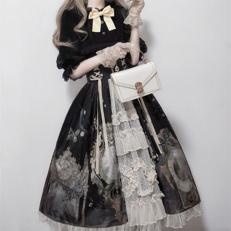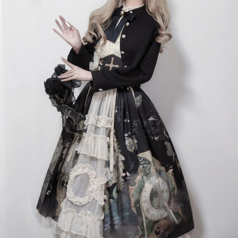 サブカル 服 地雷系 通販 ロリータ クラロリ 3点セット リボン付き シフォンシャツ インナー スカート ハイウエスト 十字架 闇かわいい 豪華 アイドル衣装コンカフェ