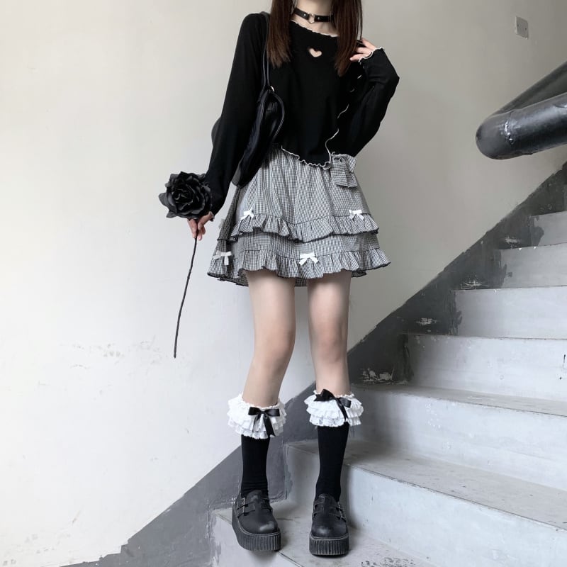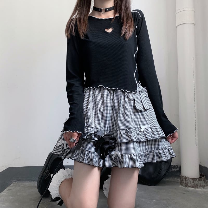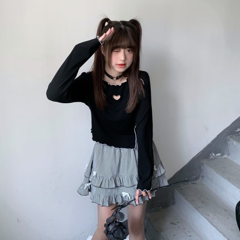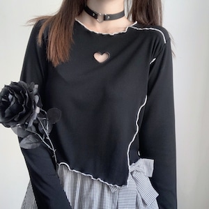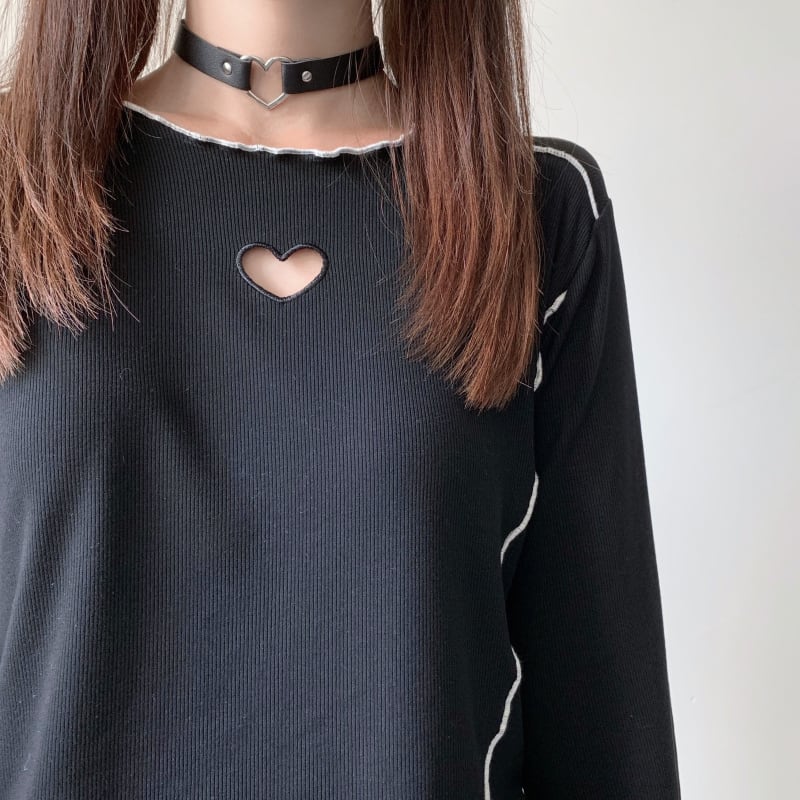 サブカル 服 地雷系 通販 長袖Tシャツ カーリング ハート 穴空き かわいい 甘め 原宿女子