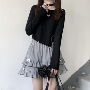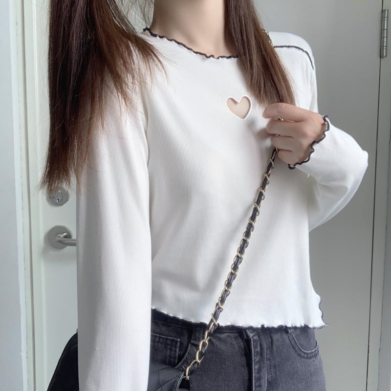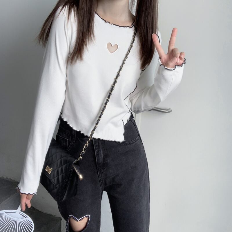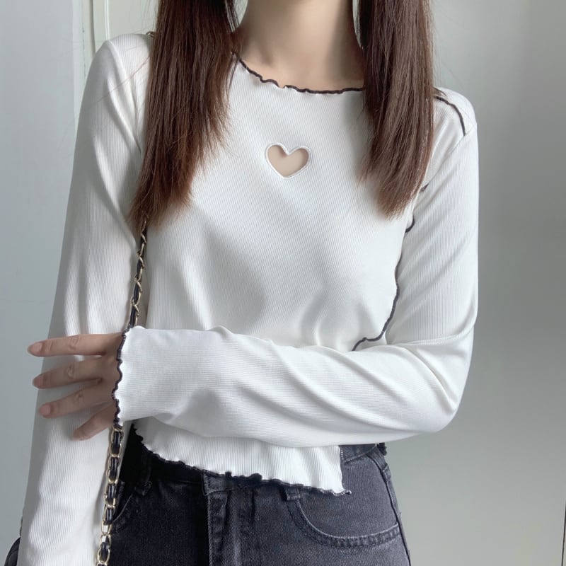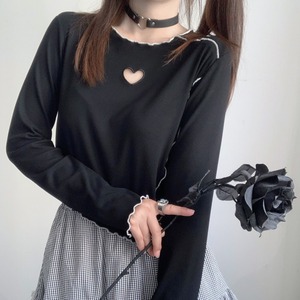 カーリング加工に胸元の穴あきハートがかわいい長袖Tシャツです