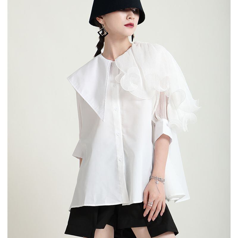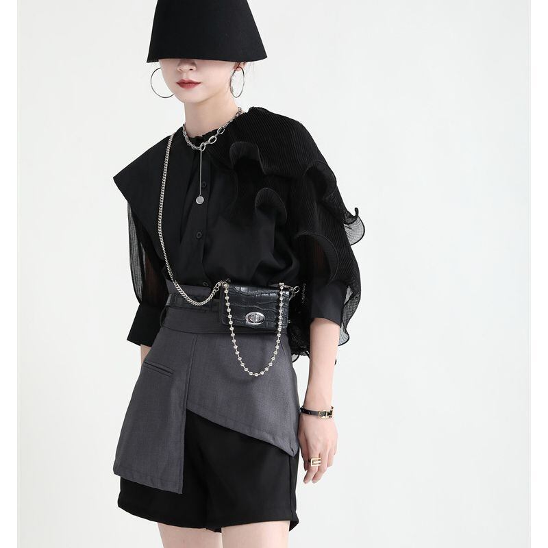 サブカル 服 地雷系 通販 モード服 中創日韓 ブラウス シャツ 半袖 透け感 シアー素材 アシンメトリ デザイン おしゃれ モード系