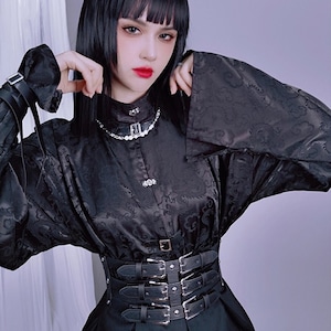 チャイナ風 長袖 シャツ トランペットスリーブ ドラゴン マット 艶消し ユニセックス 蒼宝儿屋