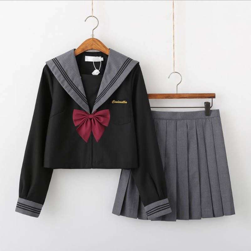 サブカル 服 地雷系 通販 セーラー服 スカート セット ショート丈 ブラック グレー 制服 水兵服 リボン 学生服 レトロ コスプレ