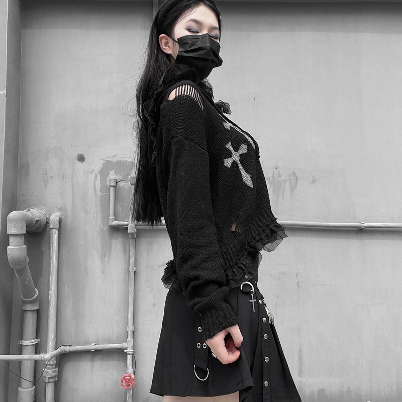 サブカル 服 地雷系 通販 Miub ミニスカート プリーツ ゴシック パンク系 十字架 スカルハンド ベルト ハイウエスト バンギャ 闇かわいい