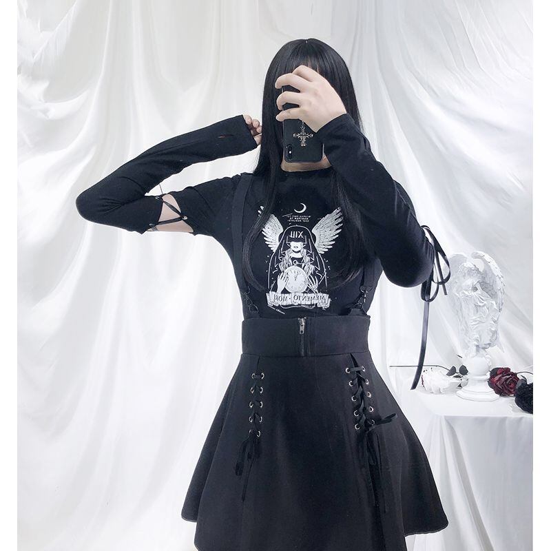サブカル 服 地雷系 通販 Tシャツ 天使 プリント 長袖 リボン ゴシック パンク系 時計 バンギャ 闇かわいい