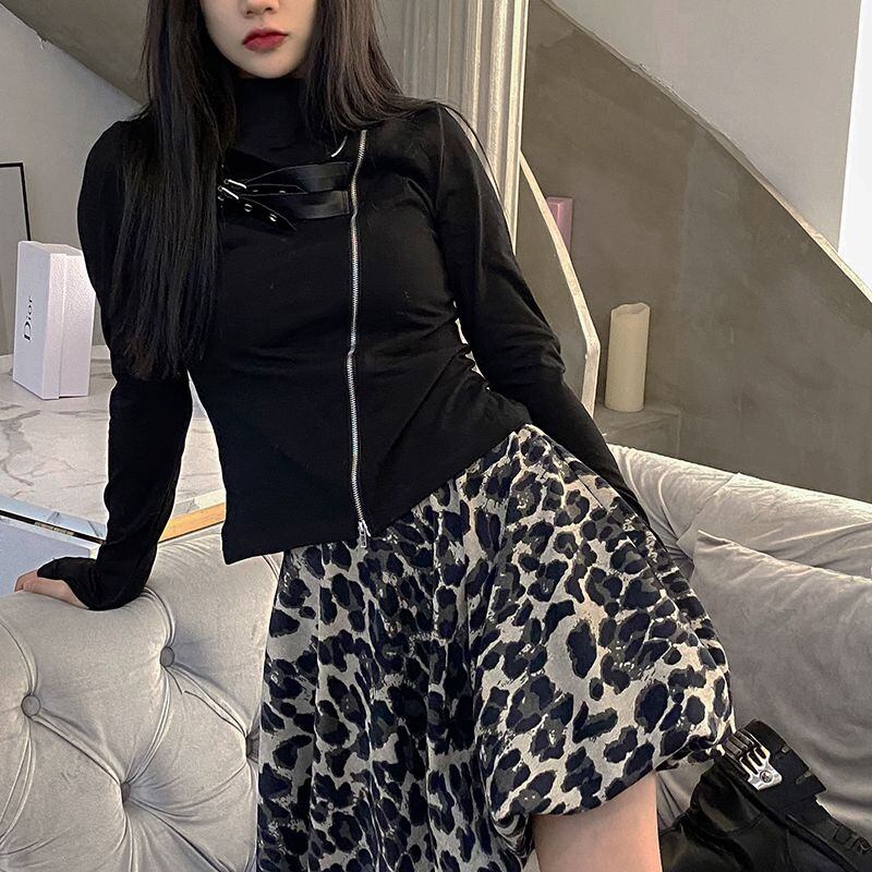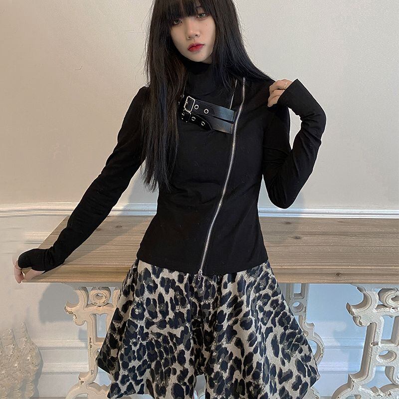 サブカル 服 地雷系 通販 タートルネック 長袖 ベルト ヒョウ柄 ショート丈 スカート セット アニマル柄 ゴシック パンク系 バンギャ