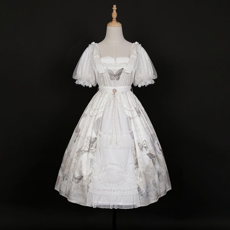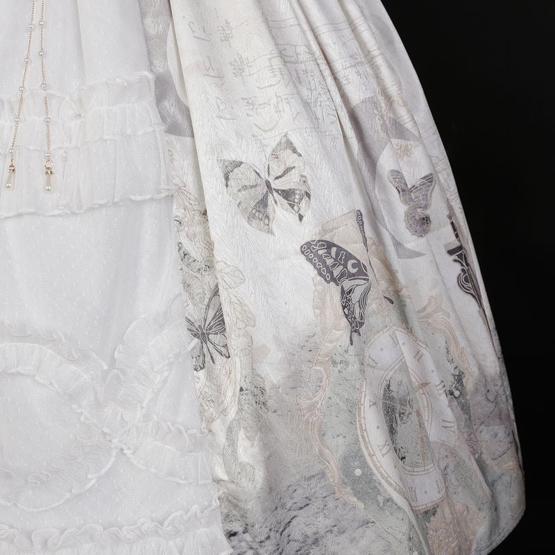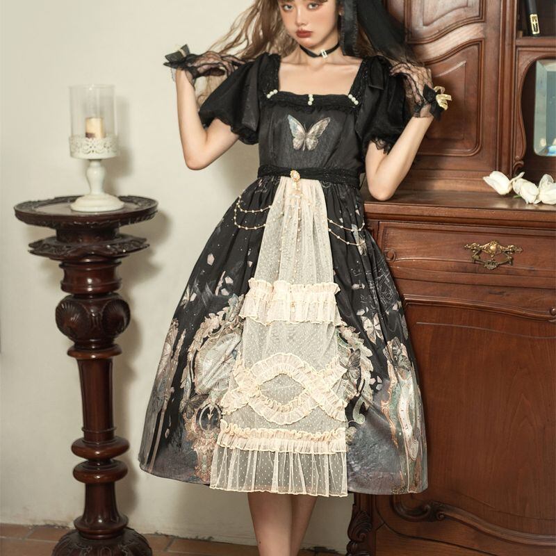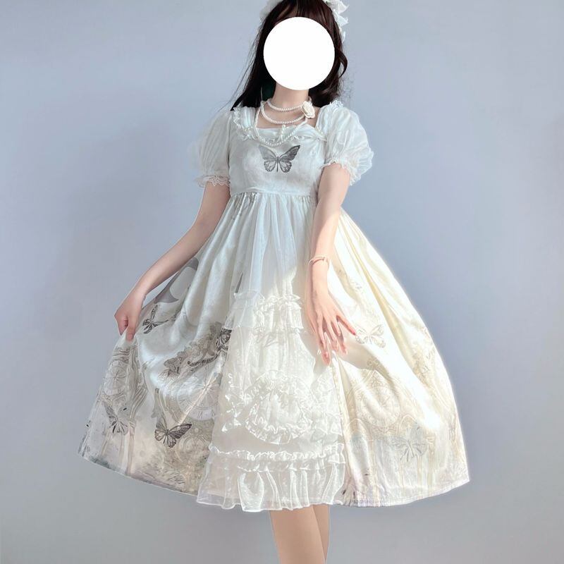 サブカル 服 地雷系 通販 ロリータ ドレス ワンピース butterfly 時計 柄 フリル レース 半袖 ロリィタ ロリィタ 服 衣装 コスプレ