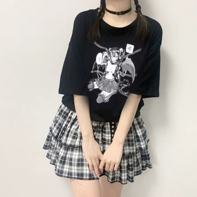 サブカル 服 地雷系 通販 Tシャツ 半袖 コミック イラスト アニメ 漫画 少女 プリント パンク系 バンギャ