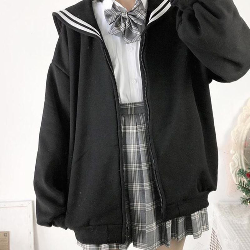 サブカル 服 地雷系 通販 セーラー風ジャケット ジップ 厚手 制服 学生 JC パステルカラー