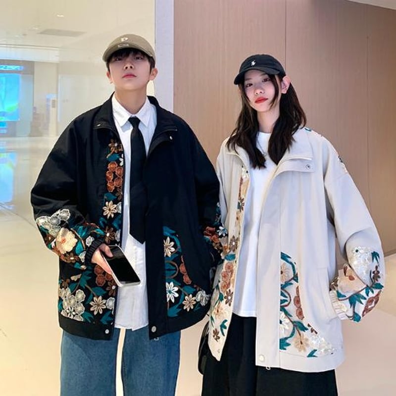 サブカル 服 地雷系 通販 ジャケット ユニセックス ボタニカル 花柄 刺繍 かっこいい クール カジュアル