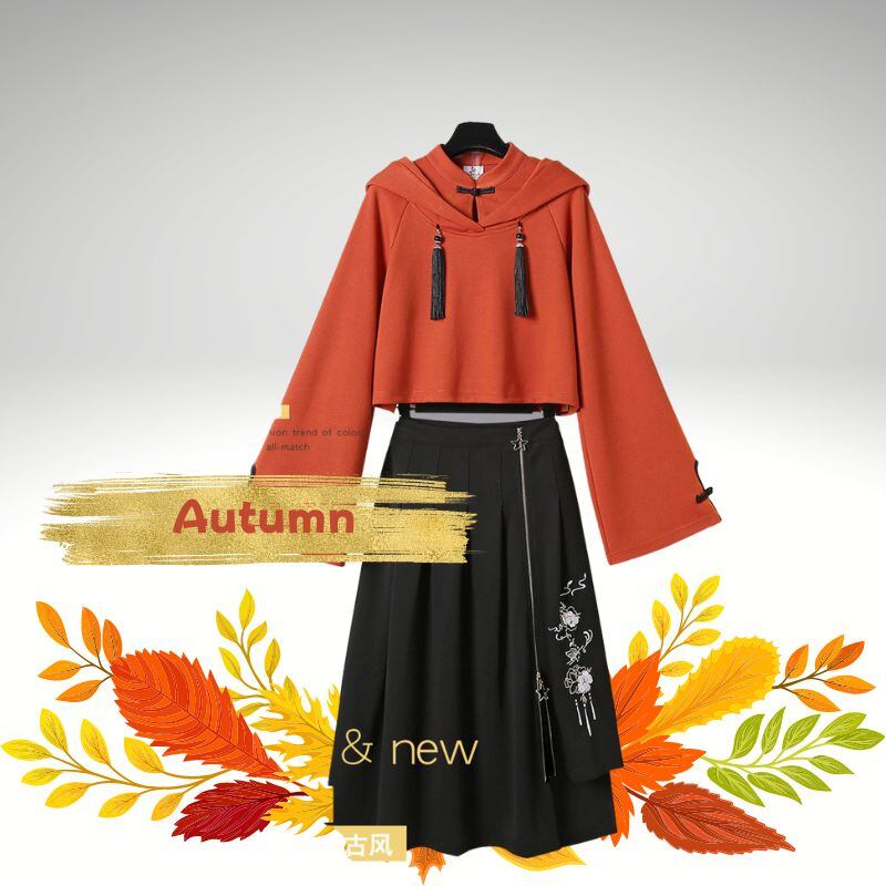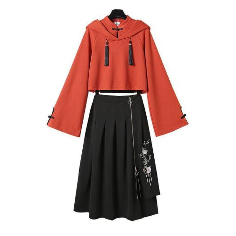サブカル 服 地雷系 通販 ツーピース プルオーバー パーカー タッセル トランペットスリーブ ミドル丈 刺繍 プリーツスカート 闇かわいい チャイナ服 中華服