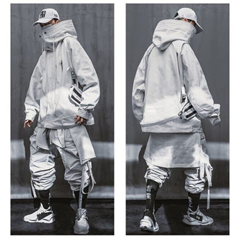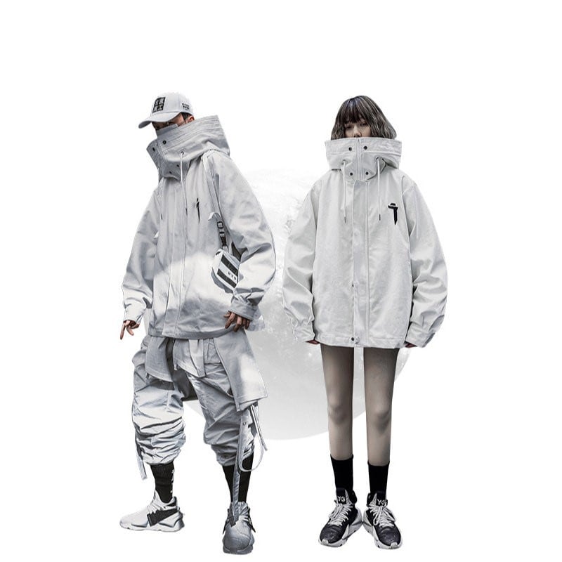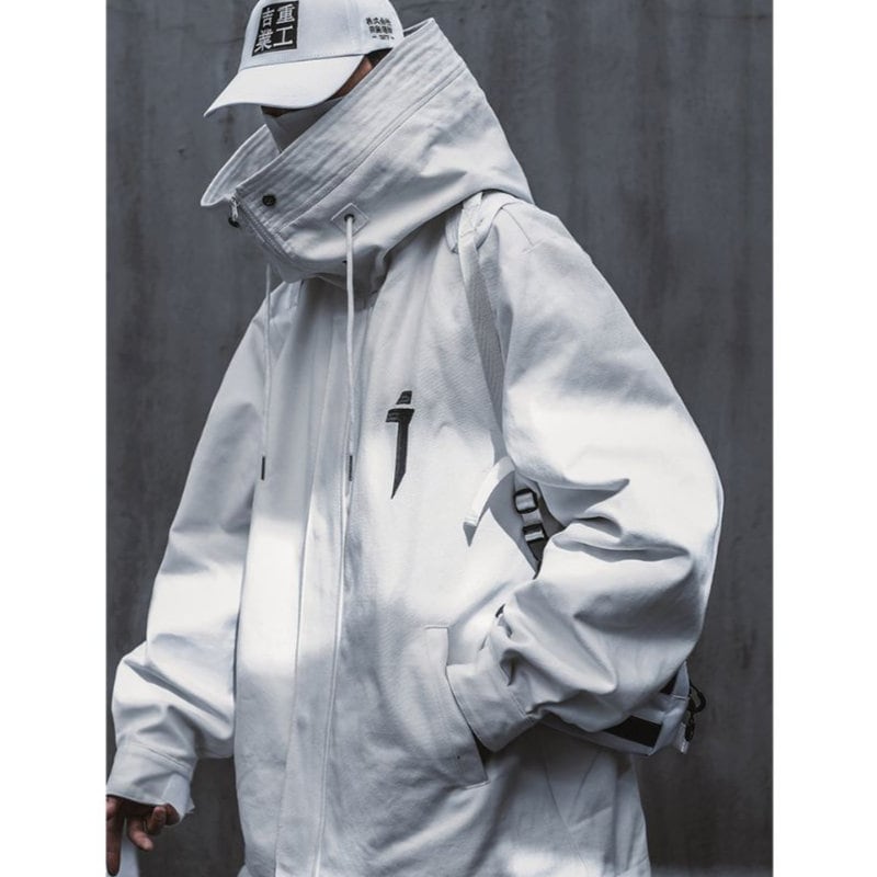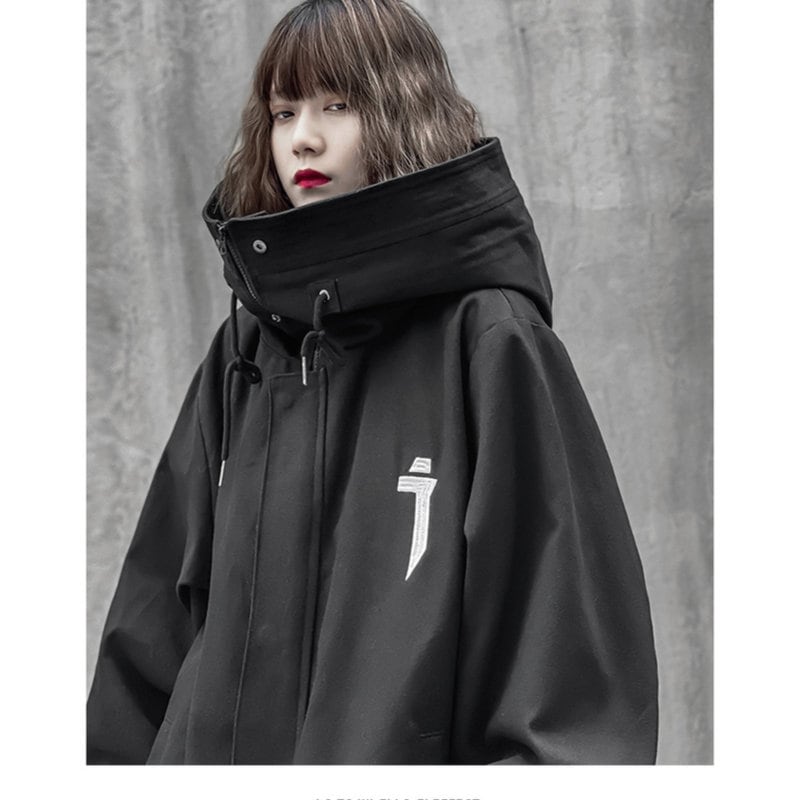 サブカル 服 地雷系 通販 アウター ジャケット 大きめ ユニセックス フード タートルネック ジッパー クール ロック ヒップホップ