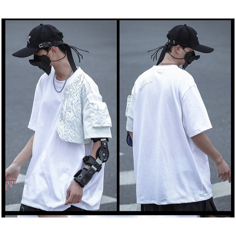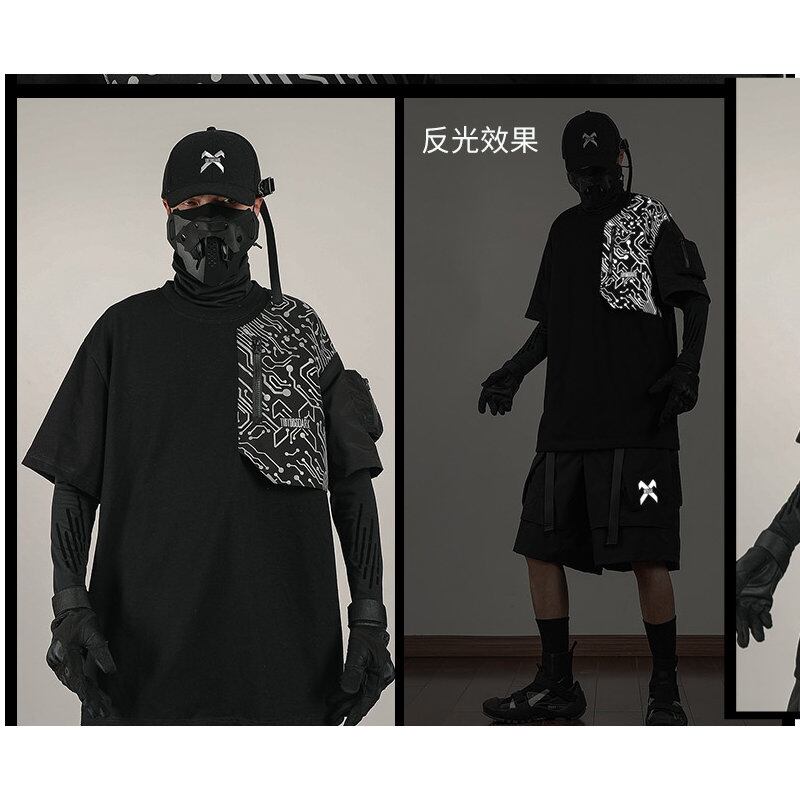 反射素材でプリントされたコンピューター基盤模様がクールなサイバー系Tシャツです。