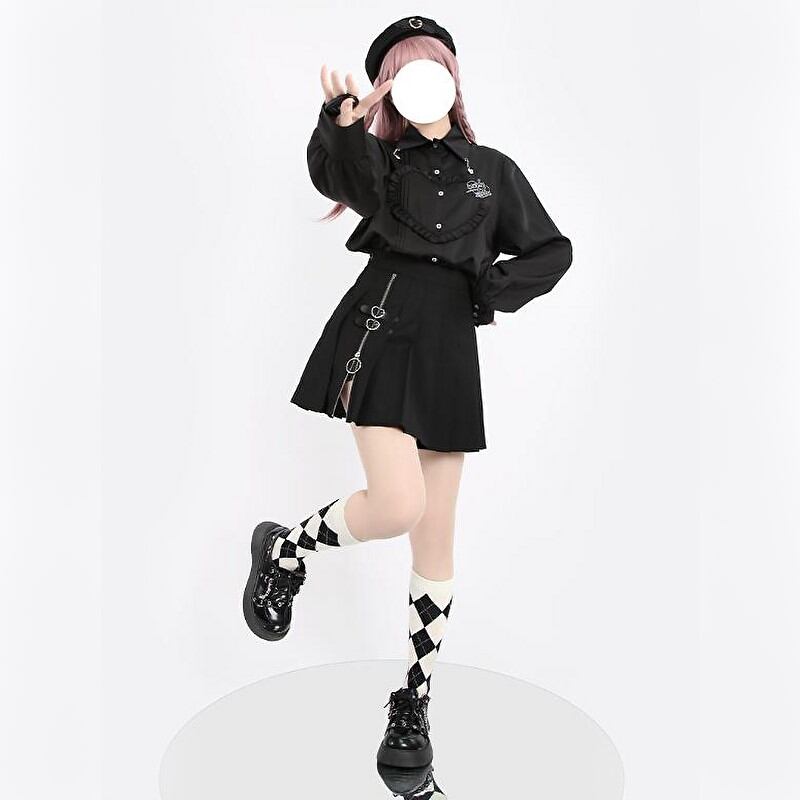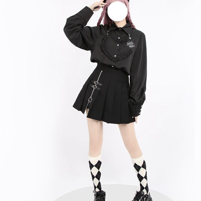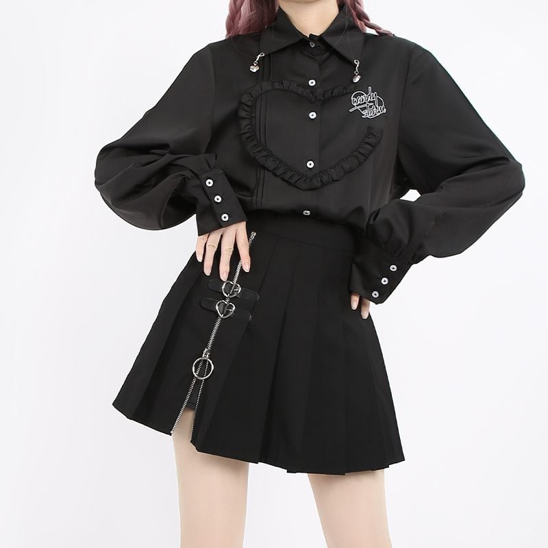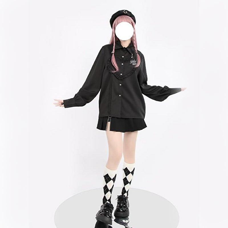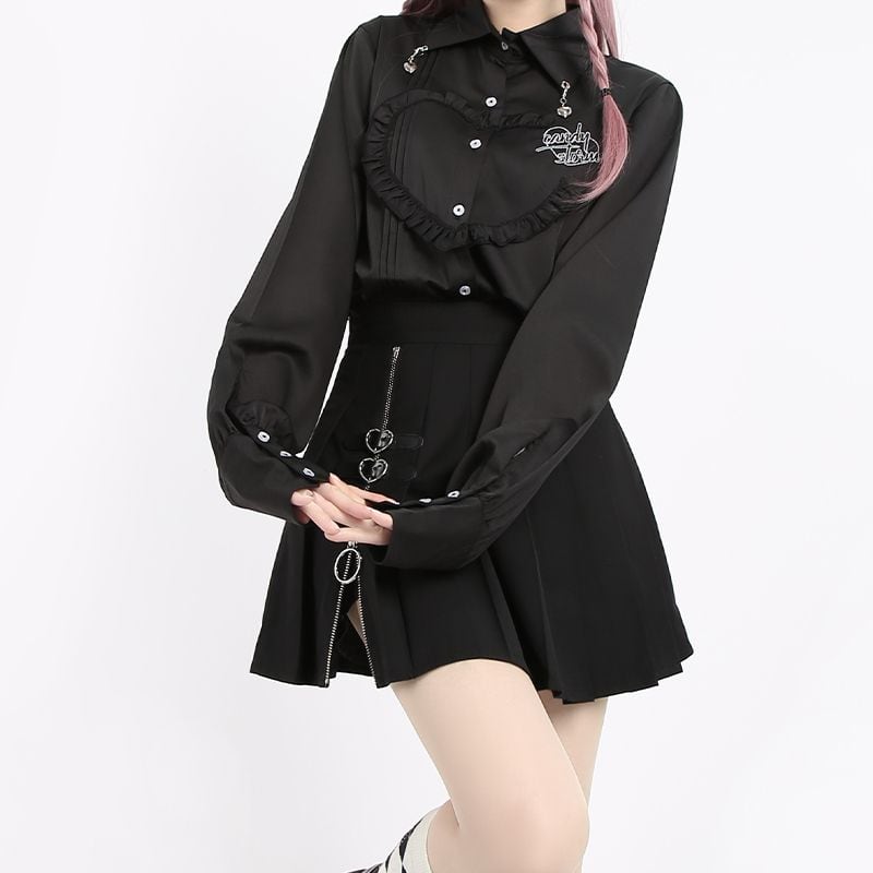 サブカル 服 地雷系 通販 Catwish ロリータ シャツ ブラウス 長袖 ハート フリル チャーム ロゴ 刺繍 かわいい ストリート系